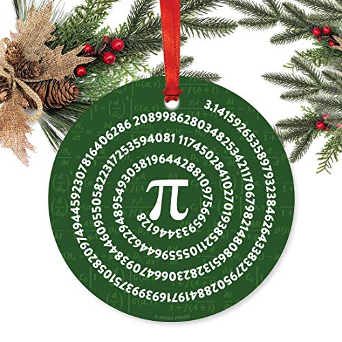 Specification: Andaz Press Round Metal Christmas Ornament, Math, Value of Pi, 1-Pack, Teacher Graduation Birthday, Includes Ribbon and Bag Math Ornaments for Christmas Tree Math Christmas Ornament